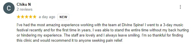 100% Secure. By Submitting, you agree to Divine Spine Yorkdale's Terms of Use and Privacy Policy. You consent to receive text messages from us at the cell number provided to book your appointment and receive reminders. Message frequency depends on your activity. Reply STOP to opt-out.